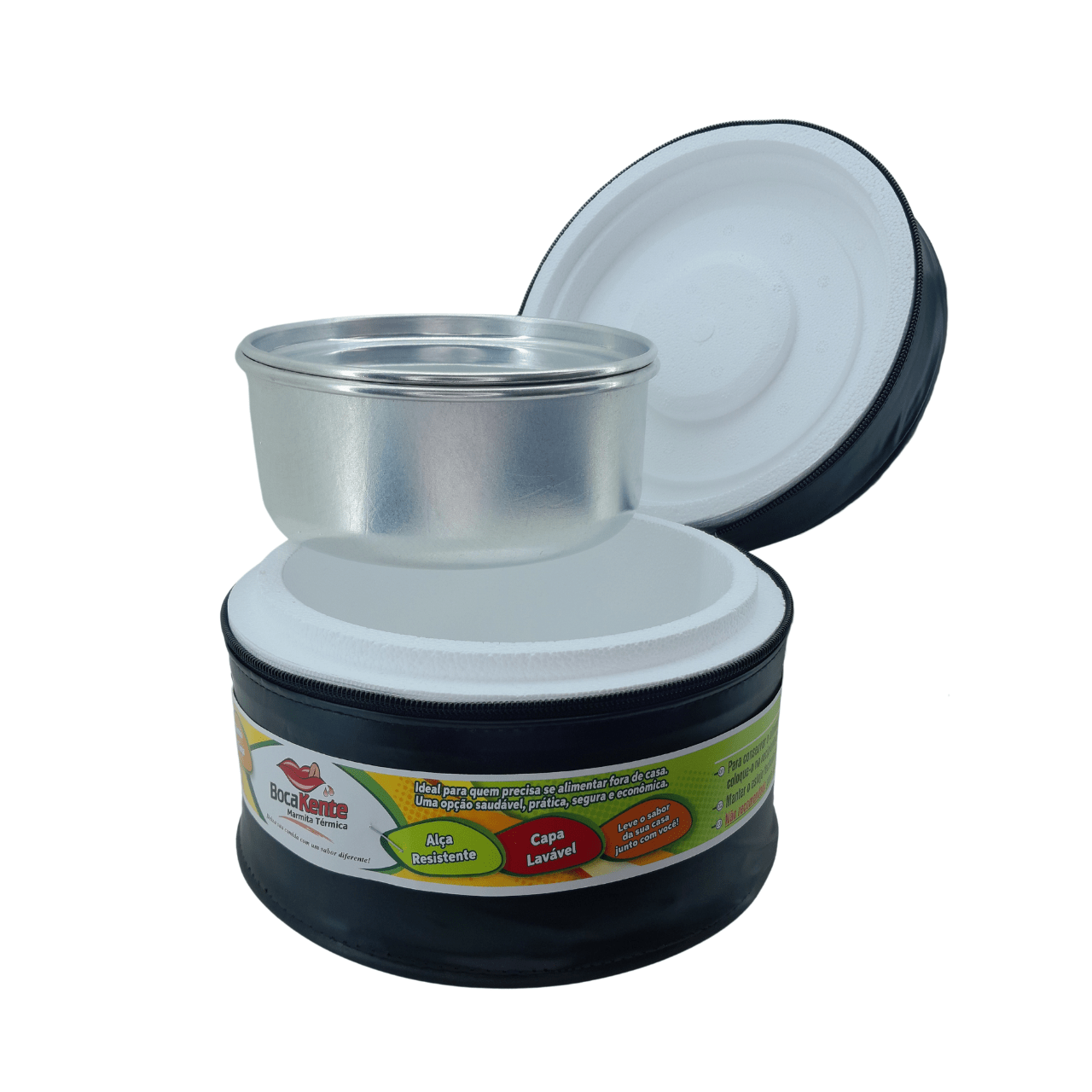 Conservação Térmica Prolongada: Com revestimento de isopor e zíper reforçado, mantém os alimentos quentes ou frios por muito mais tempo.