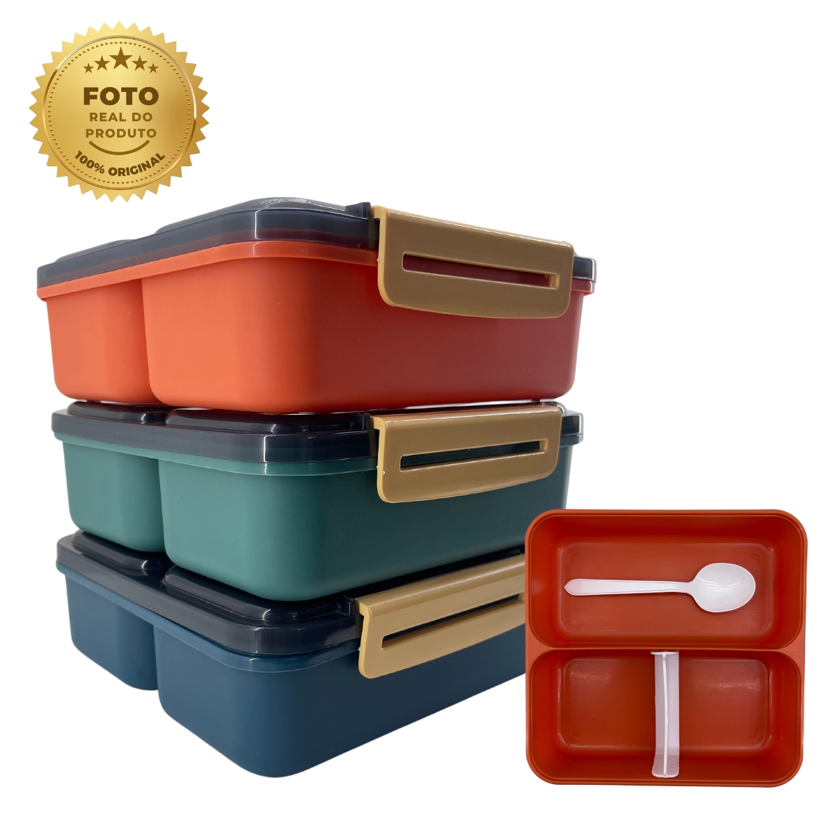 Escolha a cor que mais combina com você e aproveite a praticidade do Pote de Marmita com Divisória para suas refeições diárias!